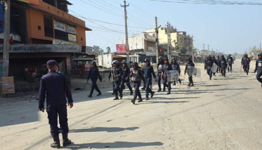 ९ फागुन,बारा । रौतहटको गौरमा उत्पन्न तनावपूर्ण स्थितिलाई मध्यनजर गर्दै शान्ति-सुरक्षा कायम गर्न नेपाली सेना, नेपाल प्रहरी र सशस्त्र प्रहरी बलसहित तीनवटै सुरक्षा निकायलाई संयुक्त रूपमा परिचालन गरिएको छ।